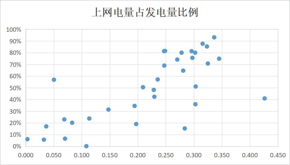 因此,自用比例越低,通常上网结算单价越高,这与上文的统计结果得出的结论一致。