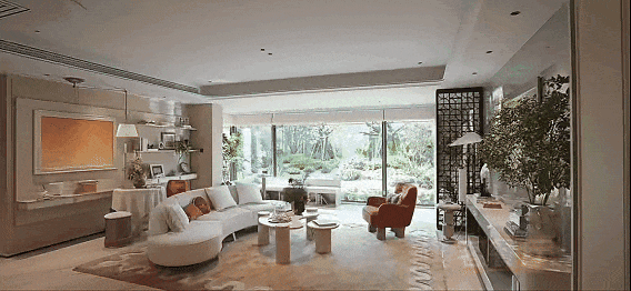 结合局部弧形玻璃与超大窗墙比,真正实现了“引景入室”,让家变成公园的观景台,重新定义了居住的视野界限.