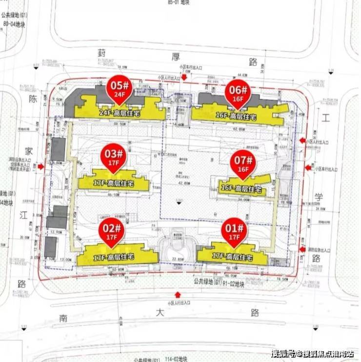 根据设计方案显示,该地块拟建5幢16-17F高层住宅、1幢24F高层住宅以及若干社区配套用房,共计规划约436户.