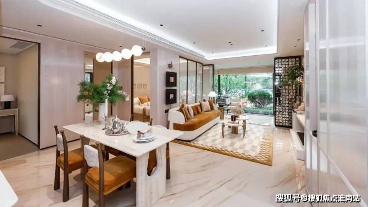 前沿中横厅设计实现0走廊、0浪费,餐厅+过道约5米面宽,哪怕放6人桌仍留足过道空间,面积直接对标市面130㎡以上户型.